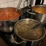 Nach dem Gottesdienst packten alle schnell mit an. Der Raum wurde umgeräumt, die verschiedenen, mitgebrachten Suppen erwärmt und schnell noch Brot geholt. Dann versammelten sich alle an einer großen Tafel. Gemeinsam wurde nun gekostet und geredet. „Das war schön“, war die weitverbreitete Meinung zu diesem Vormittag.