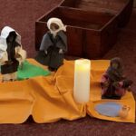 Bei diesem Gottesdienst dürfen sich Alt und Jung auch mal bewegen. So brachten zu beginn alle einen Stein zum Altar als Symbol all dessen, was wir so aus unserem Alltag mitbringen. Dann entdeckten wir unseren Schatz aus der biblischen Geschichte um die Sklavin Hagar.