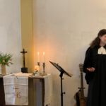 Dann waren alle Anwesenden eingeladen sich darüber auszutauschen, was ihnen Kraft gibt im Alltag. Was lässt mich durchhalten, wenn ich nicht ändern kann, was um mich ist? Erst zaghaft begannen die Gespräche, doch irgendwann mündeten all die Gedanken in einem gemeinsame Fürbitte.