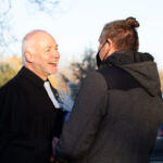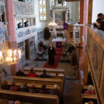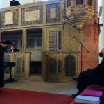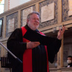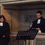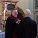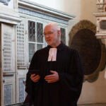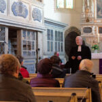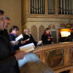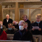 Coronabedingt konnten der Segen nicht wie üblich von jedem direkt mit Handauflegen gegeben werden. Stattdessen waren die Segnenden im ganzen Kirchenraum verteilt und aus jeder Ecke der Kirche erschall ein Segen für den scheidenden Pfarrer.