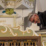Über 150 Augenpaare hatten am Samstag, 29. Oktober 2016 den Blick nur auf eine gerichtet: die Zehm-Orgel in der Kirche in Predel, erbaut 1699/1700. Zu Besuch waren Teilnehmende der Orgelfahrt, die der Dresdner Kreuzorganist Holger Gehring dieses Mal zu Orgeln im Zeitzer und Altenburger Raum unternahm. Ellen Heinichen, Vorsitzende des Gemeindekirchenrates, begrüßte die Gäste und stellte kurz die Geschichte von Kirche und Orgel vor. Im Anschluss ließ Gehring die kleine, aber feine Orgel erklingen und zeigte, was in ihr steckt. Der Klang der sechs Register und die besonderen „Effekte“ Tremulant und Gloria (Zymbelstern) begeisterten die Orgelfreunde und Sachkundigen aus dem Dresdner und heimatlichen Raum. Im Anschluss drängten sich viele noch, um das Kleinod aus der Nähe zu betrachten, bevor es zu den nächsten Kirchen und Orgeln, u.a. Geußnitz und Altenburg, weiterging.
