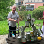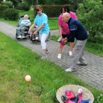 Das Sportfest wurde bereits am Vormittag mit einem dreifachen „Sport-frei!“ eingeleitet. Anschließend begaben sich die Senioren zu den verschiedenen Stationen. Beim Büchsenwerfen, Fischeangeln, Stiefelweitwurf und Luftwürfeln hatten alle sehr viel Spaß und konnten ausprobieren, wie geschickt sie noch sind. Alle wurden mit einbezogen und ermutigt mitzumachen. Es war eine sehr heitere Runde. Zwischendurch gab es zur Erfrischung eine leckere Erdbeerbowle und Eis.