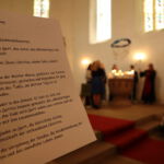 Schon seit Beginn des Gottesdienstes leuchteten viele Taufkerzen auf dem Taufstein. Eine strahlende Erinnerung an den Grund dieses Gottesdienstes. Das Bekenntnis zu Gott. Um Bekenntnis drehte sich dann auch die Predigt. Neben den Bekenntnissen zu Marken oder diversen Fußballvereinen, welches wir im Alltag ganz selbstverständlich zeigen, steht das Bekenntnis zu Gott. Es gab Zeiten, da beinhaltete dieses Bekenntnis anschließend Repressionen. Symbolisch dafür steht der Aufnäher „Schwerter zu Pflugscharen„. Um so schöner, dass wir es heute frei sprechen können ohne Angst um die eigene Zukunft haben zu müssen.