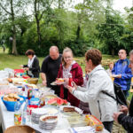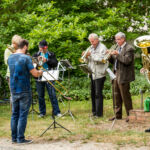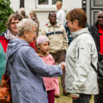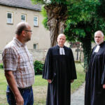 So begann der Kirchentag mit einer Andacht am Brunnen im Pfarrgarten. Besondere Überraschungsgäste waren aus Tansania gekommen: Shedrack Kikoti (Schulleiter der Schule in Bomalang’ombe), Adam Tewele (Lehrer in Bomalang’ombe) und Elisande Mhanga (Schulbeauftragter aus der Diözese Iringa), die im Rahmen der Partnerschaft mit dem Kirchenkreis Naumburg-Zeitz für drei Wochen im Kirchenkreis Gemeinden besuchten. Mitbringparty und Public Viewing boten reichlich Gelegenheit, miteinander ins Gespräch zu kommen.