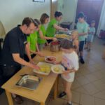 In der ruhigen Mittagszeit war auch Zeit für Geschichten. Eine besondere war die von der Steinsuppe. Da kommt der Wolf ins Dorf der Tiere, doch anstatt Unheil zu bringen verschafft er der Gemeinschaft ein fröhliches Miteinander. Manch „Feind“ ist vielleicht gar keiner, wenn man ihn ersteinmal kennenlernt.