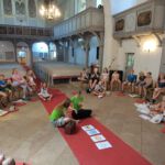 Wegen des wirklich heißen Wetters begaben wir uns wieder in die Kirche. Hier gab es Yoga und Meditation. Ein besonderer Blick wurde dabei auf unsere Hand geworfen: Mit ihr können wir andere verletzten und anderen Gutes tun. Es liegt an uns.