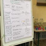 Nach dem Mittag näherten wir uns dem Abschluss. Was hat mir gefallen und was fand ich nicht so gut? Die Kinder durften auf die Pläne ihre grünen und roten Punkte verteilen. Viele traurige Gesichter sammelten dich beim Abschlussfest – gern wären wir noch länger beisammen.