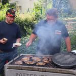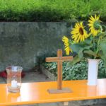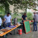 Nach dem Gottesdienst, der schon von angenehmem Grill- und Kaffeeduft begleitet wurde, konnte dann gemeinsam gegessen und sich unterhalten werden. Einige Gröbenerinnen und Gröberner nutzen die Gelegenheit auf diesem schattigen Platz, um die ordinierten Gemeindepädagogen kennenzulernen. Es wurde auch über zukünftige Zusammenarbeit gesprochen.