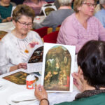 In einem dritten Schritt näherten wir uns seiner Kunst an. Ein gar nicht so unbekanntes Gemälde, welches aber zwei Mal von ihm gearbeitet wurde, ließ uns Spuren seiner Ideen und Überzeugungen erkennen. Die Felsengrottenmadonna, welche heute im Louvre in Paris und in der Nationalgalerie in London zu bestaunen ist, konnte von den Anwesenden mal ganz aus der Nähe betrachtet werden. Dabei wurde so manche Entdeckung gemacht. Von Engeln, die erst keine und dann sehr große Flügel haben. Von einem Jesusknaben, der erst ein pausbäckiges Babygesicht hatte und dann im zweiten Versuch einen fast altersweisen Blick bekam. Von einer Natur, die zunächst ganz mit den heiligen Figuren verwachsen zu seien scheint, im zweiten Versuch diesen aber Entgegen steht.