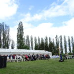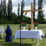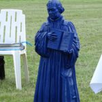In diesem Jahr trafen wir uns in Nellschütz auf dem Sportplatz. Der Altar war mit Rosen geschmückt und ein blauer Luther begrüßte die Anwesenden. Sogar Glocken waren als Einstimmung zu hören, dank der modernen Technik. Luther sollte dann auch eine wichtige Rolle spielen. Nicht nur ein von ihm verfasstes Glaubensbekenntnis wurde gesprochen, sondern auch in der Predigt wurde eine von ihm für den Himmelfahrtstag verfasste Predigt besprochen.
