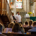 In einem feierlichen Gottesdienst in Kretzschau begrüßten Mitarbeitende der Region Zeitz und Gemeindeglieder aus den verschiedenen Orten den neuen Gemeindepädagogen und sprachen ihm Gottes Segen für seinen Dienst zu. Die ordinierte Gemeindepädagogin Andrea Lippold-Horejsek (Kayna), Pfarrer Christoph Roßdeutscher (Droyßig), Pfarrer Werner Köppen (Zeitz) und Kantor Clemens Bosselmann waren als unmitttelbare Kolleginnen und Kollegen im Gottesdienst aktiv, für den Kirchenkreis Naumburg-Zeitz waren der stellvertretende Superintendent Matthias Keilholz und die Referentin für die Arbeit mit Kindern und Jugendlichen Katrin Lange dabei.