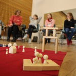 Immer wieder sangen wir gemeinsam und spielten mit unseren selbstgestalteten Gegenständen. Eine kleine Gruppe bereitete für Sonntag den Gottesdienst und eine andere für die Kirche eine Überraschung vor.