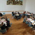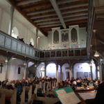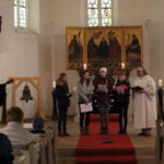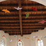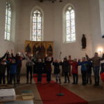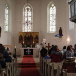 Den Abschluss bildete, wie in jedem Jahr, der gemeinsame Gottesdienst. Dieser fand in diesem Jahr mal in der Kirche St. Peter in Hohenmölsen statt. Hier sangen nun auch die Eltern und Gottesdienstteilnehmenden alle Lieder kräftig mit und die viele Bewegung ließ es auch nicht zu kalt werden. Noch einmal schauten wir die Bilder an und die Kinder konnten vieles berichten und erklären. Den biblischen Text verdeutlichte eine Gruppe mit Gesten. Dazu erzählte Katrin Lange ein paar Gedanken darüber, was die kleine Gemiende in Ephesus, die Gemienden heute in Taiwan und uns miteinander verbindet. Es ist die innere Stärke, derer wir uns bewusst machen können und es ist die Hoffnung auf Frieden. Und dann schwebte die Überraschung über die Köpfe der Gemeinde hinein. Viele bunte Friedenstauben.