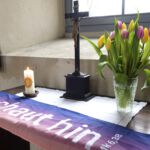 Gemeindereferentin Dorothe Kotzian und die ord. Gemeindepädagogin Friederike Rohr feierten mit 28 kleinen und großen Gästen einen Ökumenischen Himmelfahrtsgottesdienst in der ErlebnisKirche Wählitz. Dabei schlugen sie auch eine Brücke zum Ökumenischen Kirchentag, der zugleich in Frankfurt am Main digital gestartet ist.