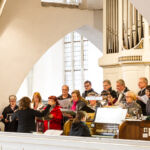 Der Kammerchor unter Leitung von Johanna Schulze bereicherte den Festgottesdienst mit „Wie lieblich sind deine Wohnungen, Herr Zebaoth“ (Gustav Merkel), „Gott, unser Schöpfer“ (Zsolt Gardonyi), „Hör mein Bitten“ (Felix Mendelssohn Bartholdy ) sowie „Laudate“ (Knut Nystedt), die Kinder waren von Gemeindepädagogin Beate Jagusch zum Kindergottesdienst eingeladen und die Liturgie gestaltete Pfarrer Werner Köppen.