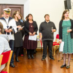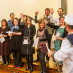 - Und gestärkt an Leib und Seelen geht‘s nun volle Kraft voran. Denn Kultur darf hier nicht fehlen, deshalb singen wir sodann.