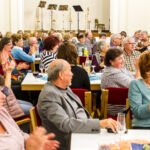 Besonderheit des Abends: Dieses Jahr waren vor allem alle diejenigen eingeladen, die sich in den Gemeinden musikalisch engagieren – in den Gemeinde- und Gospelchören, in der Kantorei und dem Kammerchor, als Bläser, Gitarrenworkshopleiter, Bandmitglieder oder Organisten. Diesem hochmusikalischen Publikum geschuldet wurden die einzelnen Programmpunkte nicht nur angesagt, sondern durch ein eigens gedichtetes Moderationslied musikalisch eingeleitet.
