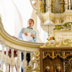 Er hatte besondere Orgelwerke im Gepäck, die dem Klangcharakter der Orgel angemessen waren und all ihre Möglichkeiten aufscheinen ließen. Johann Pachelbel, Johann Jacob Frohberger, Johann Csapar Kerll und Samuel Scheidt waren die Meister, die er zur Freude der Gemeinde erklingen ließ.