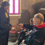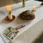 Natürlich teilten die Gottesdienstbesucher auch Brot miteinander. Und passend zum Kirchenjahr saßen die Gottesdienstbesucher vor dem frisch hergerichteten Altar, der von der Passion erzählt: Jesus in Gethsemane. Die Kirche ist ein kleines Schmuckstück geworden, dank vieler Helferinnen und Unterstützer aus dem Ort, der evangelischen und katholischen Gemeinden.