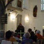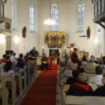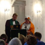 Am Freitag Abend, in Mitten des Herbstmarkttrubels, erklangen dann auch etwas andere Töne in der Kirche zum ökumenischen Gottesdienst. Hier widmeten sich Johannes Rohr und Dorothea Kotzian mit der Gottesdienstgemeinde einer der schwersten Fragen: Wo war dein Gott? Dafür gingen alle gemeinsam auf Entdeckungsreise: Angefangen wurde bei Mose, der wissen möchte, wie er diesen Gott, der ihn zu den Israeliten in Ägypten schickt, nenne soll. Dazu kamen ganz aktuelle Glaubensgeschichten: Wo war da Gott? „In den Ärzten, den Pflegern und Helfern in einer schweren Krankheit“ oder auch „In mir, wärend ich unter Beschuss und in Gefangenschafft auf Besserung hoffte“