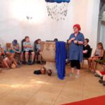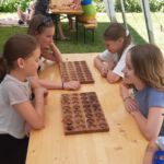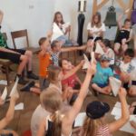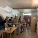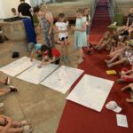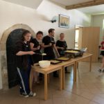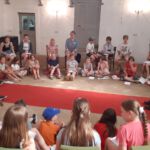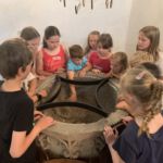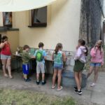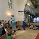 So gstärkt konnte der vierte Tag beginnen. Eine letzte Gruppe von Geschichten findet sich noch in der Bibel. So fanden die Kinder in der Kirche einen Brunnen vor und da kamen 3 Frauen, die ihre Geschichte erzählten. Als erste war da Hagar, die mit den Kindern ihr letztes Brot teilte. Sie wurde mit ihrem Sohn Ismael von Gott gerettet, der ihnen auf der Flucht (von Abraham und Sarah) durch die Wüste einen Brunnen zeigte. Danach kam Rebekka an den Brunnen. Sie war so freundlich zu einem Kamelhirten und seinen, dass sie über ihn ihren zuküftigen Mann traf (übrigens der Sohn von Abraham und Sarah). Dann kam eine dritte Frau. Sie wollte am liebsten gar niemanden am Brunnen treffen – die anderen Menschen redeten schlecht von der Frau aus Samarien. Aber Am Brunnen traf sie Jesus, der ihr von „lebendigem Wasser“ erzählte. Dieses Wasser macht satt, anders als unser normales Wasser, von dem wieder Durst bekommen.