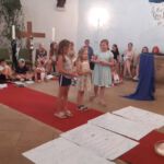 Der dritte Tag hatte eine ganz spezielle Möglichkeit mit Wasser zum Thema. Es drehte sich alles um die Taufe. Jesus selber wurde von Johannes dem Täufer getauft im Jordan. Dann haben seine Freunde dieses Zeichen für ihre Gemeinschaft gewählt. Wer dazugehören will, der lässt sich taufen. So erzählt es zum Beispiel die Geschichte vom Kämmerer aus Äthiopien, der sich sehr spontan für die Taufe entscheidet. Mit den Kindern schauten wir auch darauf, wie heute eine Taufe abläuft. Manche Kinder konnten auch von ihrer eigenen Taufe berichten.