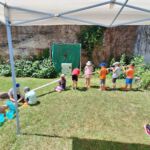 Am zweiten Tage wurde es dann noch vielseitiger. Wir entdeckten Wasser in verschiedenen Geschichten. Da wurde es stürmisch auf dem See Genezareth – doch Jesus konnte die Wellen beruhigen. Es wurde gefährlich für die Menschen und Tiere auf der Erde – doch Noah konnte mit einer Arche jeweils ein Paar retten. Beinah wäre die Flucht aus Ägyten am Schilfmeer geendet – doch Mose teilt mit Gottes Hilfe das Meer und das Volk wurde gerette. Mit einem Spielparcour konnten die Kinder auf unterschiedliche Weisen Wasser transportieren.