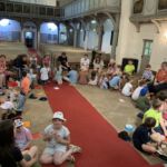 Am späten Nachmittag wurden dann die Schlafplätze in den Zelten und der Kirche vorbereitet. Es gab ein Kinderkino mit Nemo und Dorie auf der Suche nach dem kleinen Malin, welches groß und kleinen Menschen Freude machte. Zum Abschluss gab es eine Abendandacht in der Kirche und ein letzte Lied bevor dann alle in ihre Schlafsäcke verschwanden.