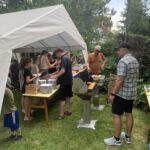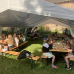 Nach kurzer Nacht, weil auch die Dämmerung schon Licht in die Zelte warf, erwachte unsere kleine Zeltburg. Eine kleine Gruppe machte sich auf die Wanderung zum Wählitzer Bäcker und holte für die ganze Gruppe frische Frühstücksbrötchen.