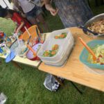 Mit einer Abschlussandacht für Eltern und Verwandte endeten die Geschichten rund ums Wasser. Danach feierten allegemeinsam ein großes Abschlussfest. Ein paar Familien hatten Salate und Köstlichkeiten mitgebracht für ein Buffett. Ein paar Väter schwitzten am Grill und versorgten alle Anwesenden.