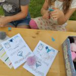 An vier Tagen Ende Juni drehte sich alles um das Thema Wasser. Am ersten Tag entdeckten die Kinder in an unterschiedlichen Stationen die Eigenschaften und Möglichkeiten von Wasser und fanden Antworten auf viele Fragen: Wie schmeckt Wasser, wenn es gefroren ist? – Köstlich! Besonders mit Früchten oder Saft gemischt. Kann man mit Wasser zaubern? – Wunderschön sogar! Mit Blumen, die sich auf der Oberfläche entfalten zum Beispiel. Kann man mit Fischen kuscheln? – Klar, wenn man sie selber gebastelt hat. Und wie funktioniert das eigentlich mit dem Wasser hier auf der Erde? Mit Regen und Schnee, mit Nebel und Flüssen.